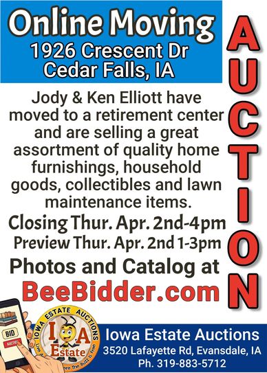 Subscribe to upcoming auctions in the Cedar Falls, Waterloo and surrounding area.