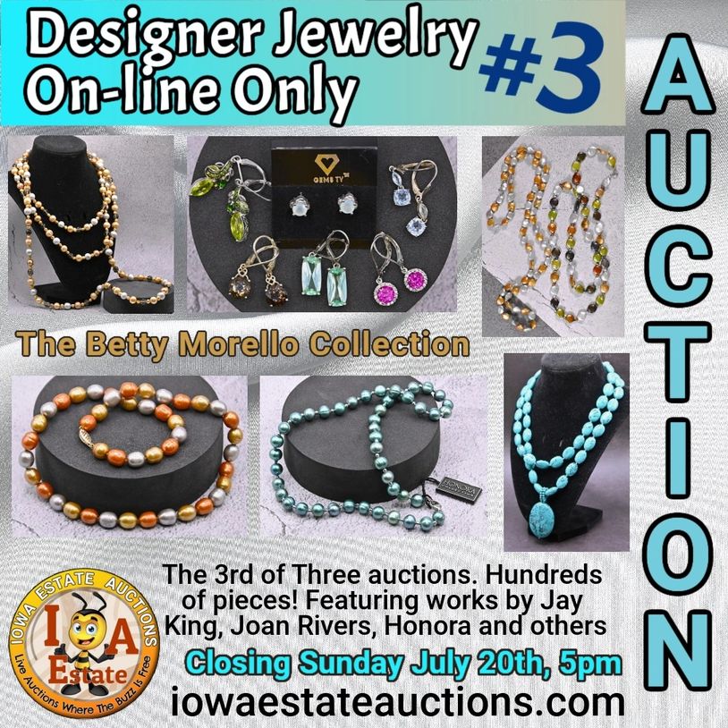 The 1st of a number of designer jewelry auction for the Betty Westine collection. Featuring works by Heidi Daus, Joan Rivers, Jay King and others,. The majority purchased at HSN Gemstone events and for the most part this vast collection has never been worn. This is your opportunity to buy quality designer jewelry at auction with low opening bids and no reserve.